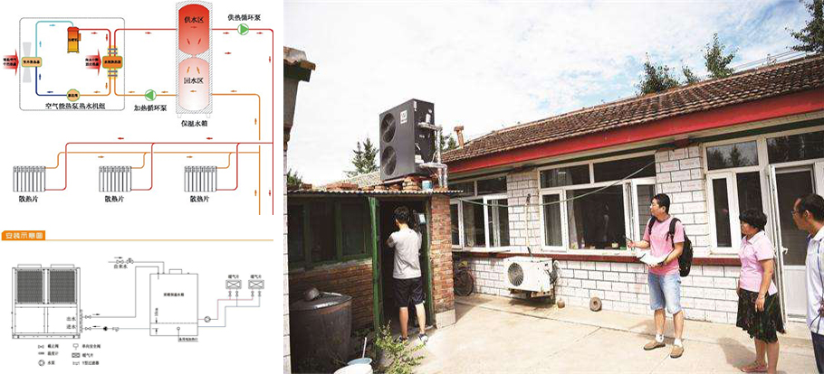 以空气源热泵、太阳能、燃气锅炉等清洁能源为热源,散热器为主要末端的供暖系统集成。